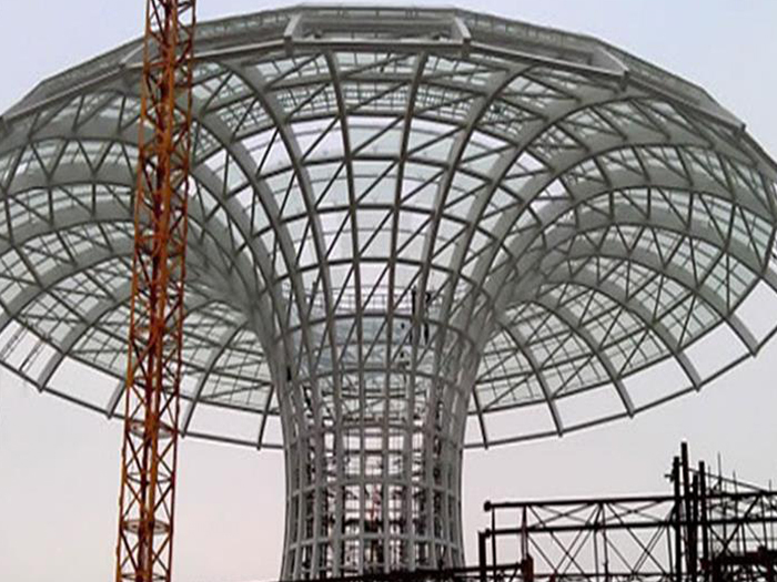 二、球形网架结构因其结构新颖,受力合理,自重轻、用钢量低等优点。如大型体育场馆球形扬中螺栓球网架、公共场馆球形网架、电厂扬中螺栓球网架、水泥工业球形网架、仓储物流球形网架、扬中干煤棚工业球形网架、扬中收费站扬中加油站球形网架、展览中心、影剧院、商场、航站楼、候车厅、工厂扬中车间、仓库、电视塔等球形螺栓球节点网架。国内球形网架结构主要分为:扬中焊接球节点网架及螺栓球节点网架两种。螺栓球节点网架其构件工厂内加工量较大,现场安装便捷,适用于现场工期紧,扬中施工条件、用电量受制约,网架形状复杂、扬中杆件定位困难的异形结构。螺栓球节点球形网架系统基本由扬中杆件、螺栓球、支撑支座等组成。按照节点形式可分为交叉扬中桁架体系、四角锥体系、三角锥体系等。支撑方式多为固定支座支撑。对于大面积、大跨度及有特殊受力或伸缩要求的网架结构可采用橡胶支座、滑移支座、球铰支座等支撑形式,以满足结构自身的受力稳定、均衡,便于内力释放等设计要求。